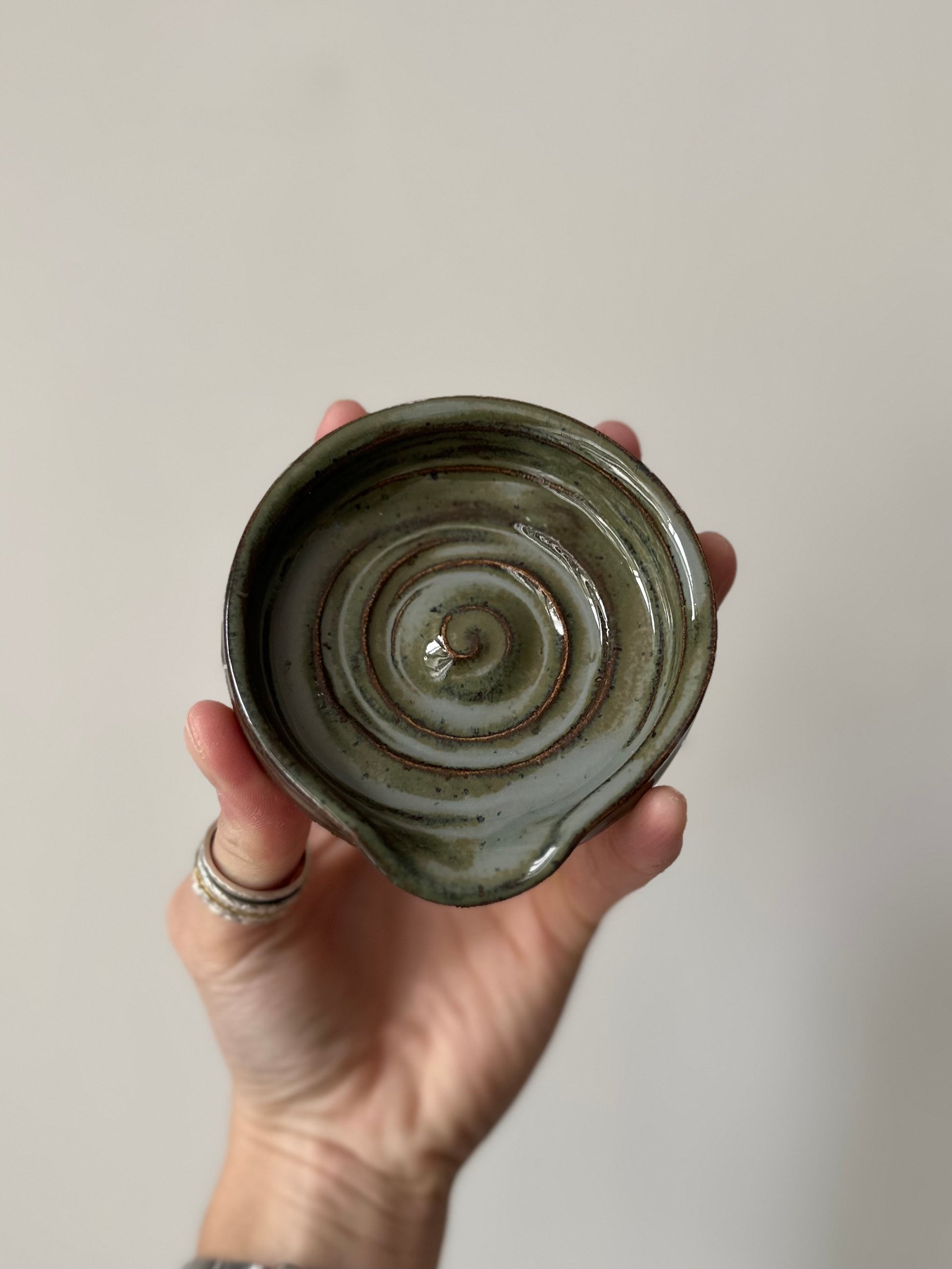 Speckled clay, green oxy glaze.