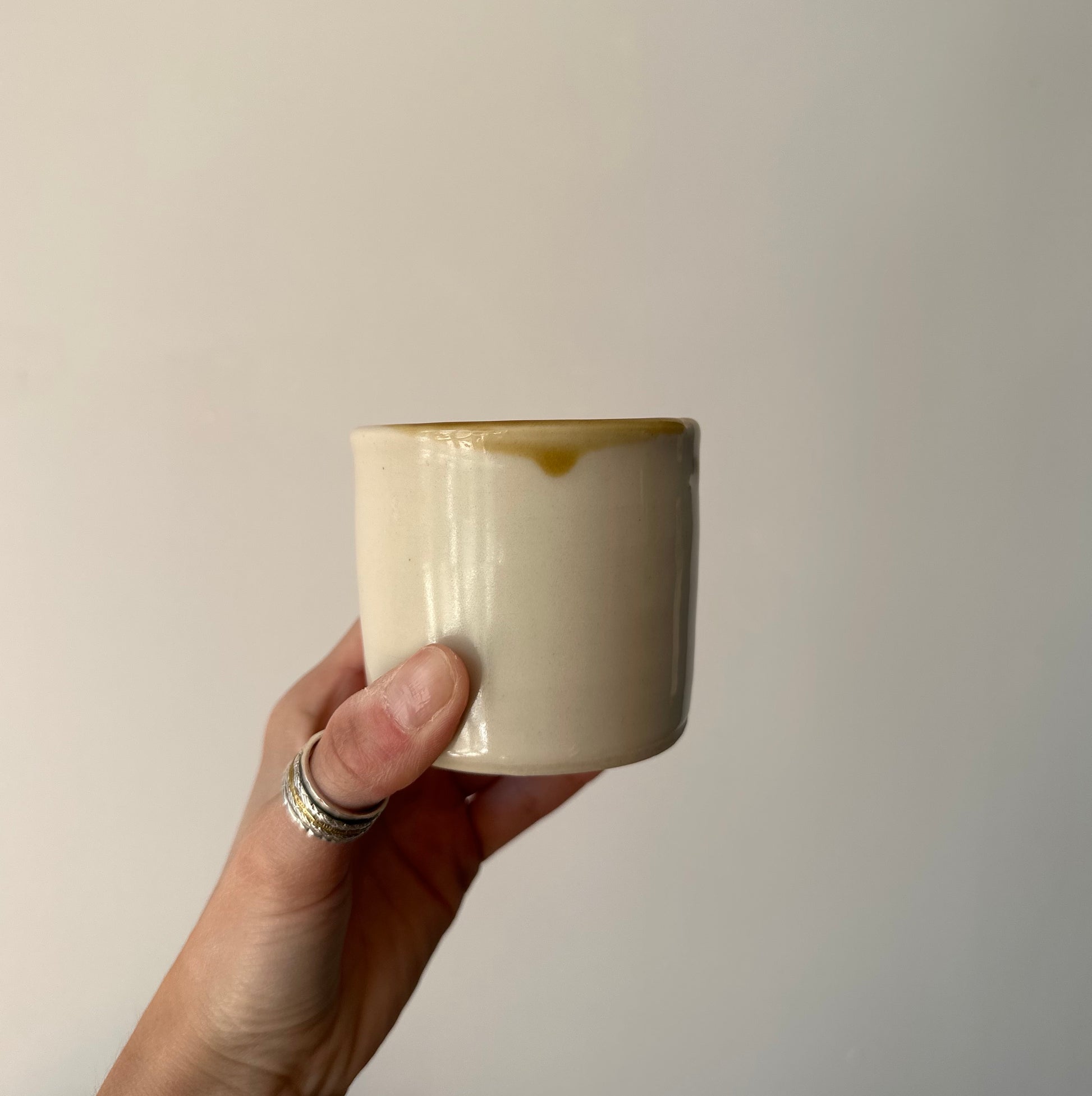 I'll be sad to see this cute little tumbler go. One of my first creations, It's still my favourite glaze combination.