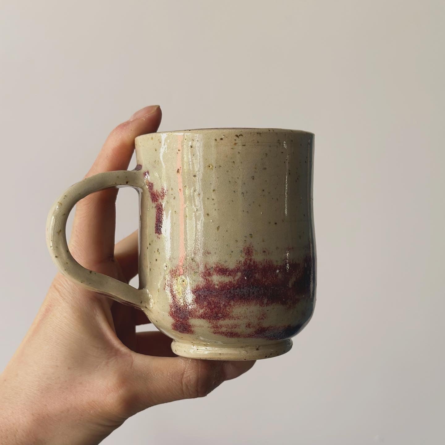 Speckled clay. Mayco Oxblood hand-brushed glaze.